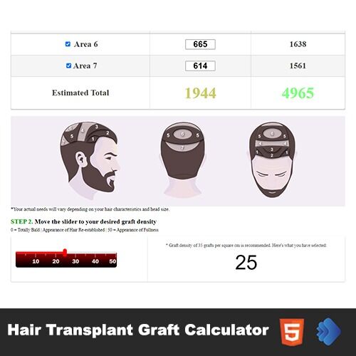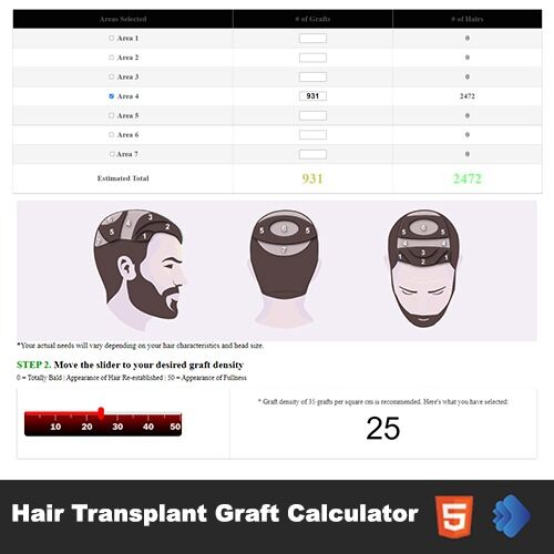 The hair graft calculators typically ask users to choose the area of the scalp they are looking to have issues resolved on and exactly how much hair they will need transplanting to that area to give a ballpark on how many grafts are needed to do the job.