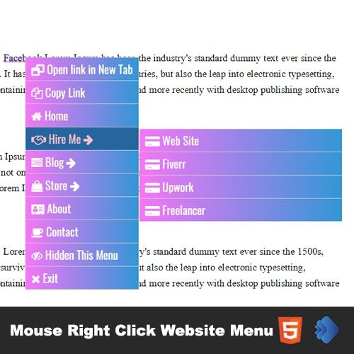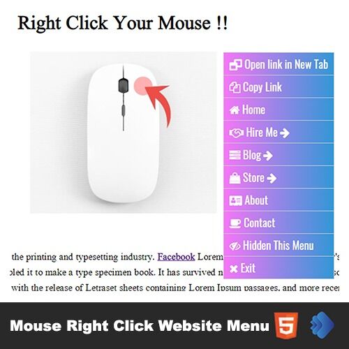 - Mouse Right Clickable website menu
